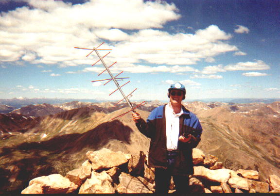 Here is Chuck Duey, KI0AG, on Mt. Elbert in Colorado. At 14,433 feet it is the highest mountain in Colorado. The trail to the top is five miles long, and rises 4,400 feet.