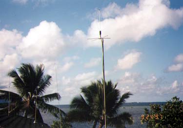 LEFT to RIGHT- Ringo Ranger 2mtr Antenna, 435mhz Eggbeater Antenna, Butternut HF5V(Ground-Mounted) HF Vertical, 145mhz Eggbeater Antenna. The 435mhz Eggbeater Antenna is location is where the rotary Satellite antenna will be located. The AR-22 rotor is mounted low to the tile roof. Hopefully, a short boom, low to the roof will survive the winds. Fixed elevation will be used initially during the ground and later, roof-top testing. A homebrew remote antenna switch will switch the R-F Preamp between the circular polarized beam and the eggbeater antenna on the mast of the rotor. The 2mtr circular polarized beam antenna will be tested at fixed elevations also for transmit and recieve separately.
