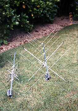 Each antenna section is being tuned and tested as this Web page is being written. If it seems to work, additional director elements may be added for increased gain. The need for low wind resistance is important, as there are often high winds at this location. The antennas that share a common boom will be connected, and tuning tested again. It may be a few weeks before the antennas will be fully tested.